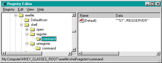 The command line in Example 4 runs the currently selected file passing the /REGSERVER argument, which tells the executable to register itself.